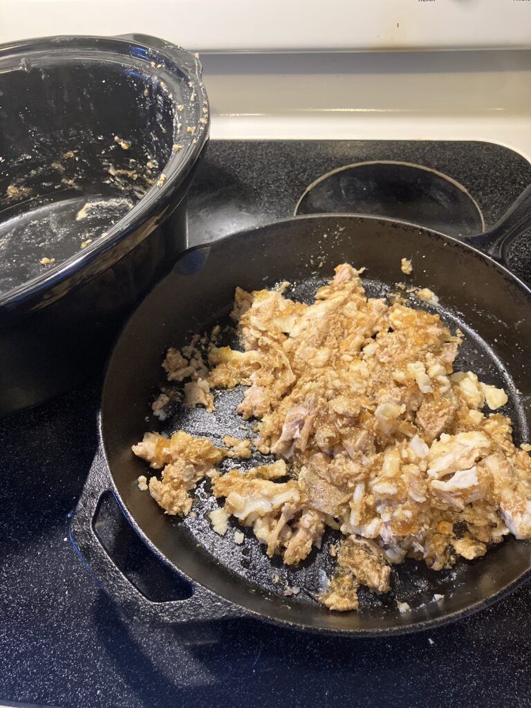 I love making pork roast or pot roast in my croc pot, especially throughout the winter months. These large cuts of meat feed multiple people and often leave plenty leftovers to enjoy later. They are filling, and require very little hands-on cooking time, making them a go-to in our house. When I discovered that I could turn the leftovers into my husband’s favorite meal, these cuts of meat became an even greater favorite of mine!