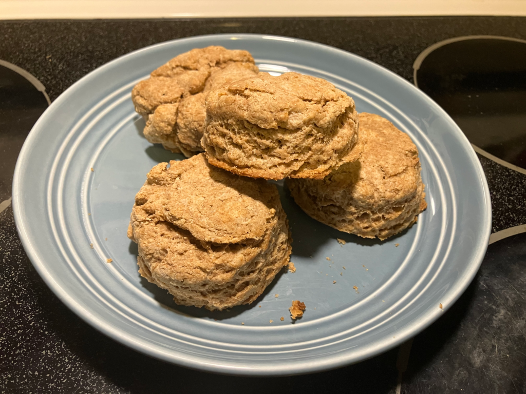 These biscuits are super easy to make and nutritious! They take me 20 minutes from start to finish–making them a perfect addition to a quick from scratch dinner. You can even make them ahead for this meal and further limit your hands on time at dinner. For a more detailed recipe click here.